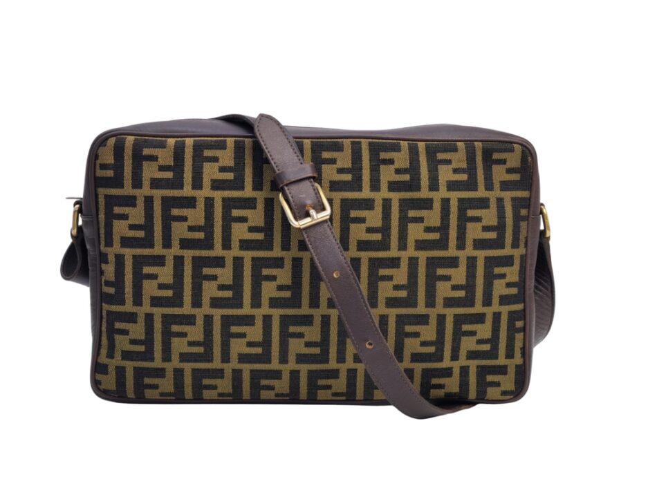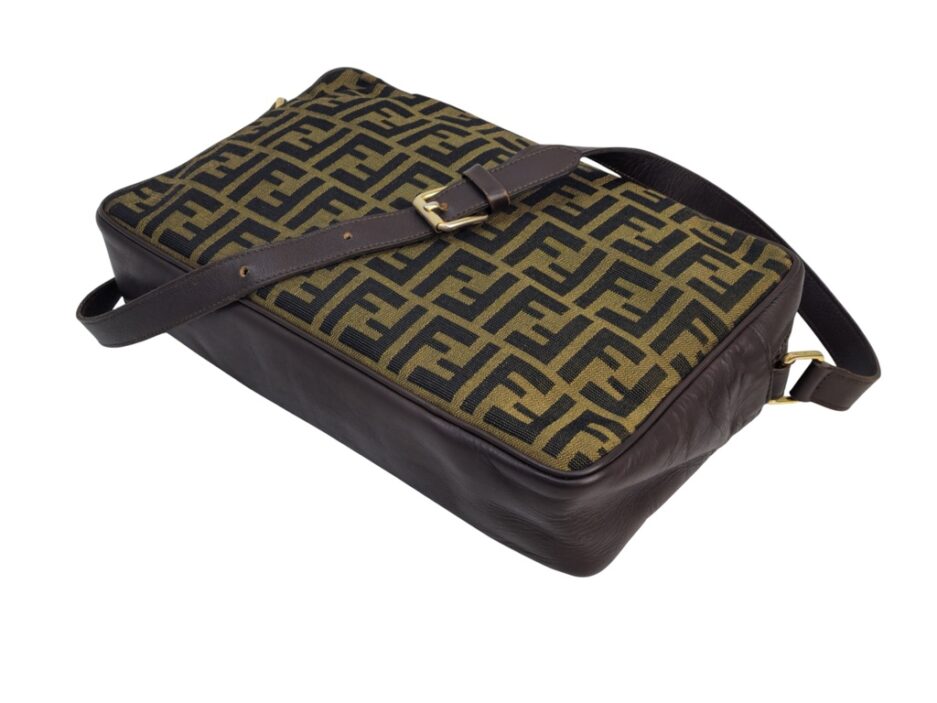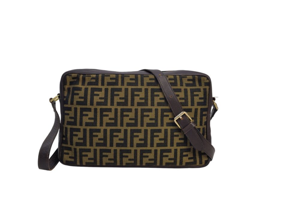 Fendi borsa a tracolla motivo Zucca in tela logata marrone e rifiniture in pelle tono su tono.