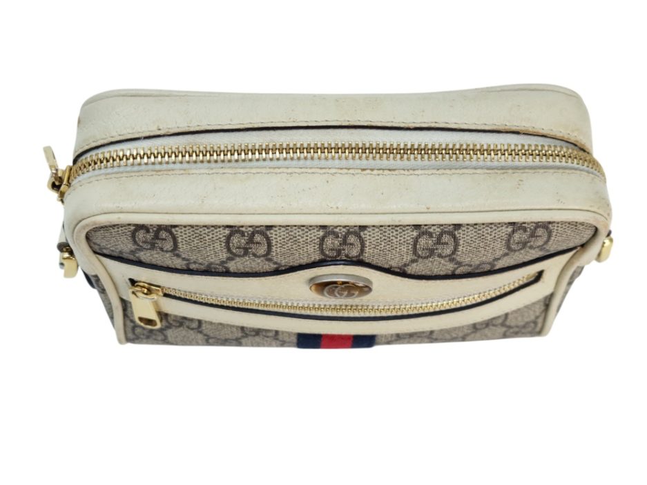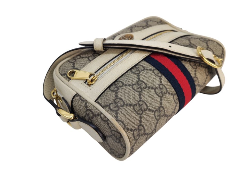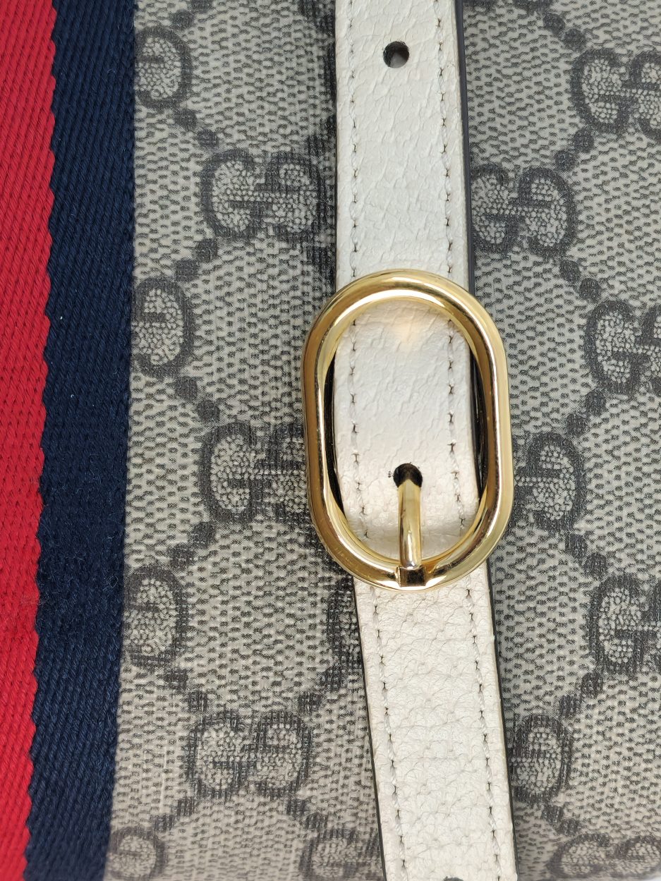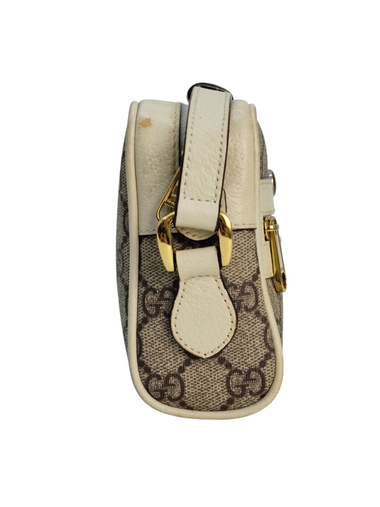 Gucci Borsa Mini Ophidia in Tela e Pelle Bianca