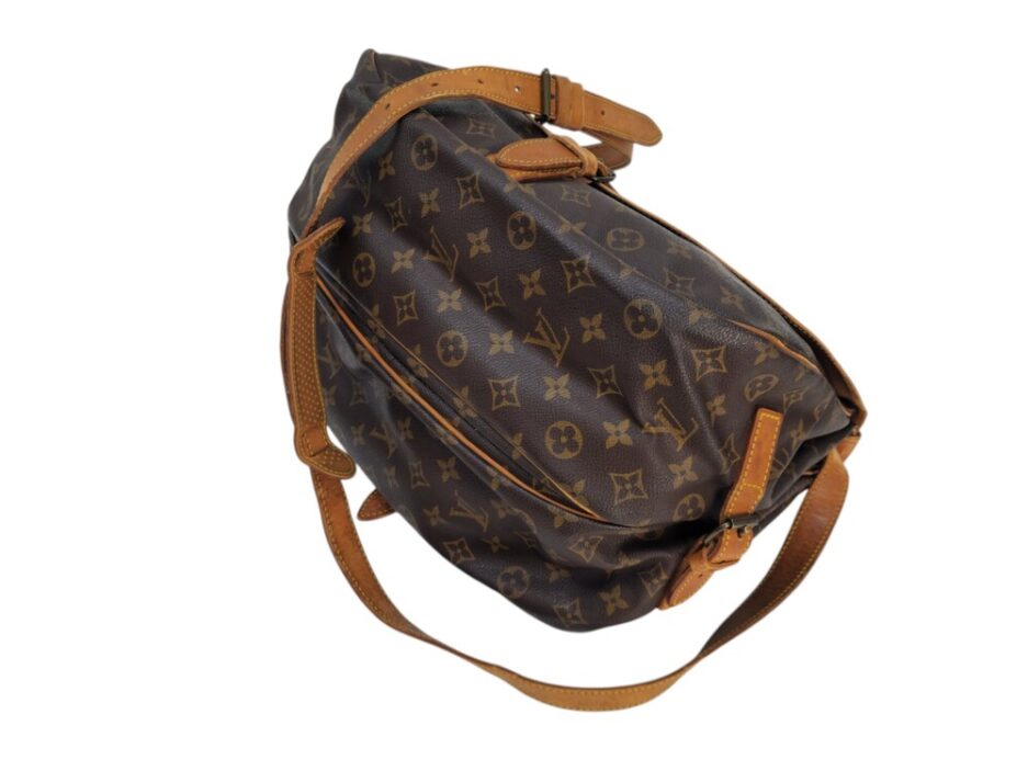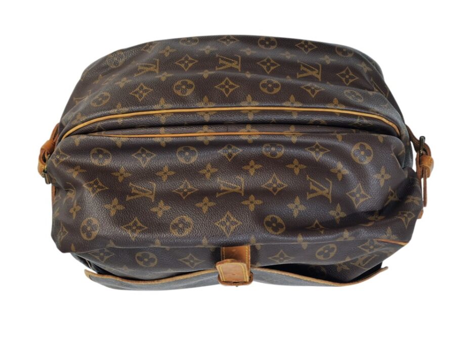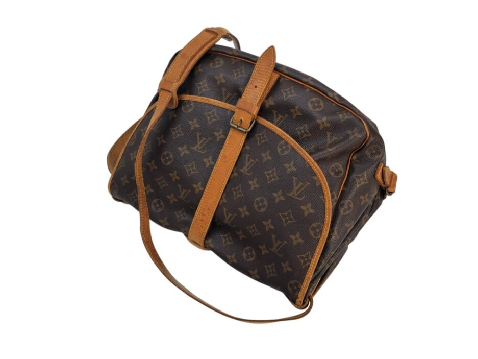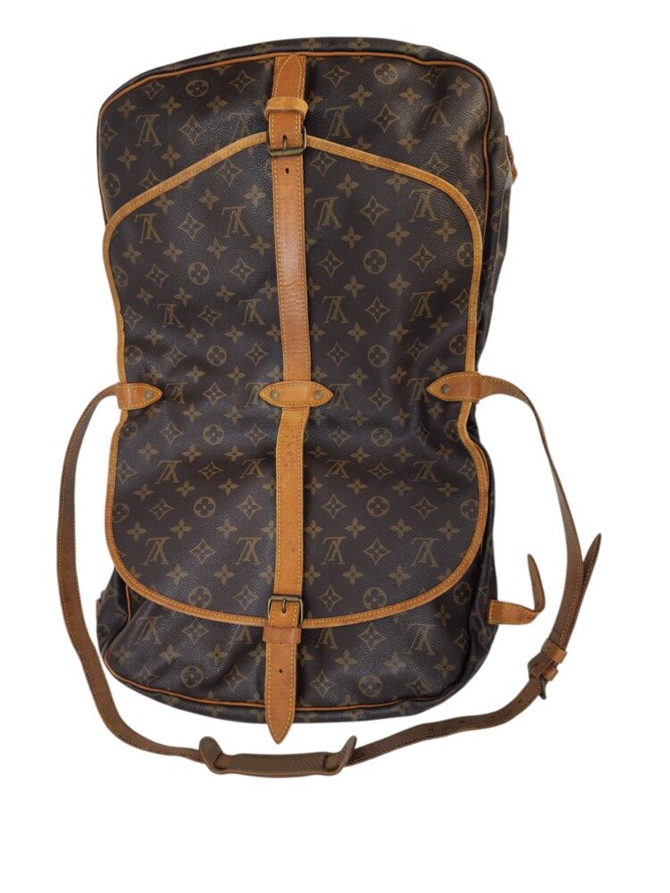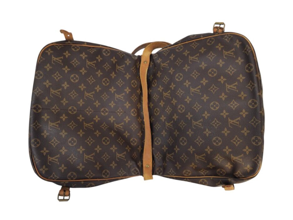Louis Vuitton Saumur MM in tela monogram con rifiniture in vacchetta naturale. Una borsa pratica che permette di essere utilizzata da entrambe le parti.