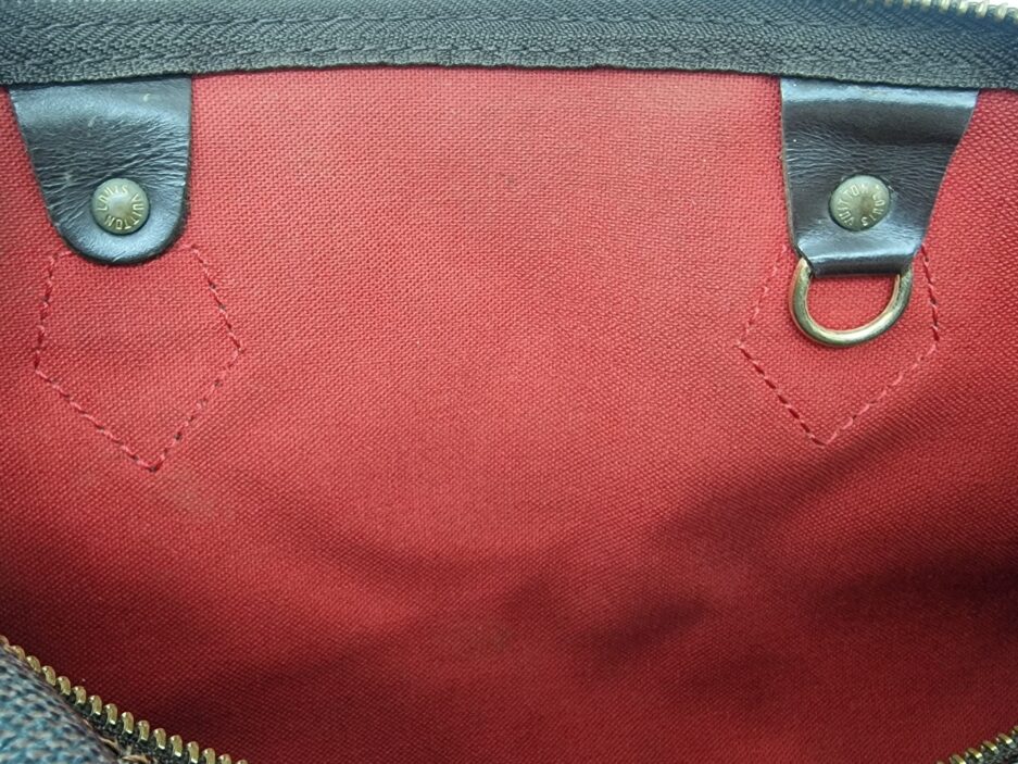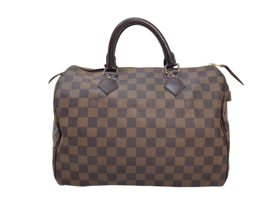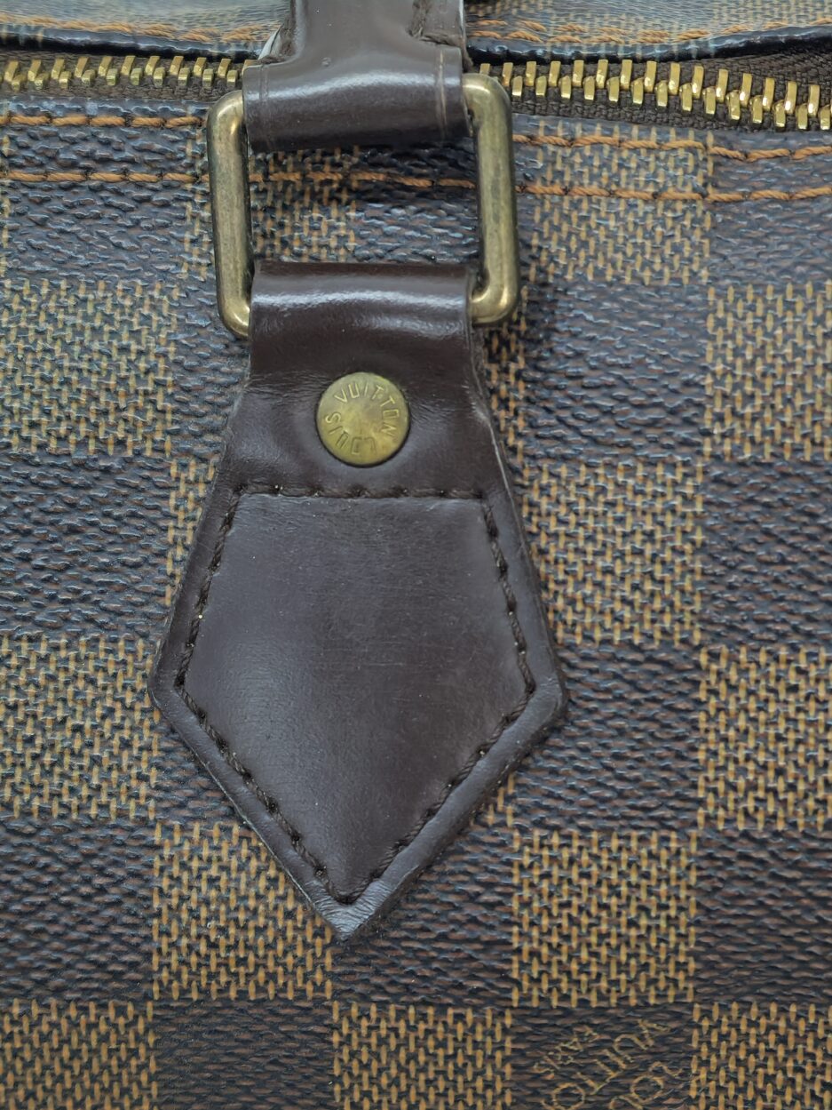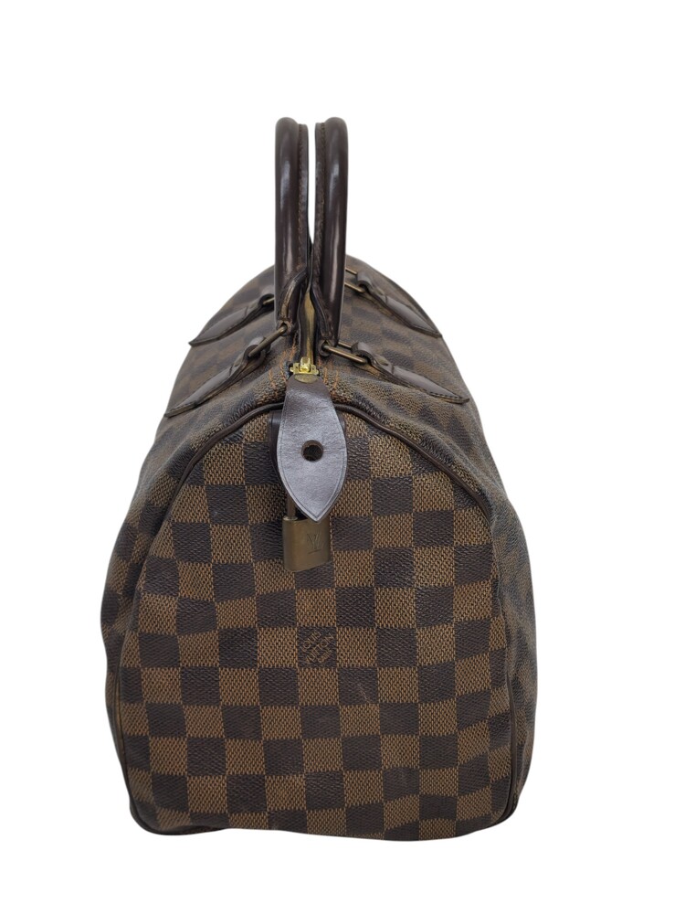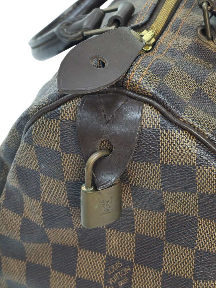 Louis Vuitton Speedy 30 in tela Damier marrone e rifiniture in pelle nella stessa colorazione.