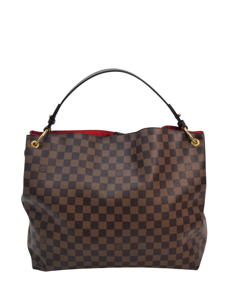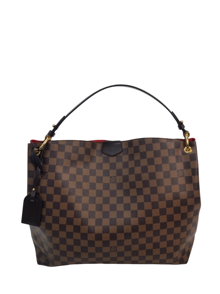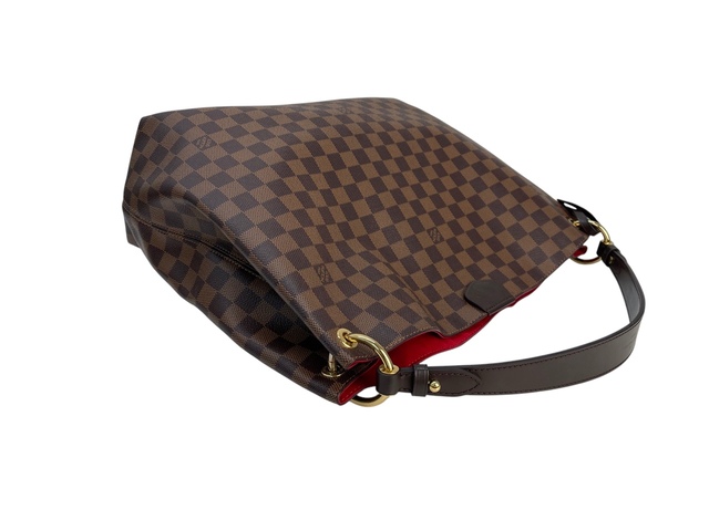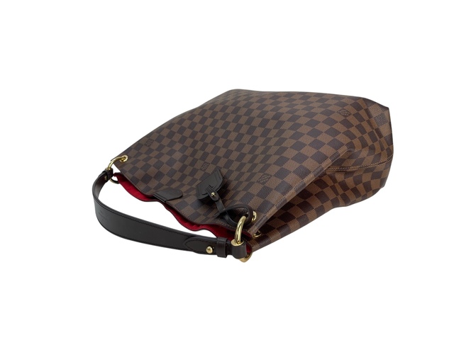 Louis Vuitton Delightful MM in tela damier con rifiniture in pelle marrone. La borsa è un modello hobo, una comoda grande sacca con chiusura nella parte superiore con bottone.