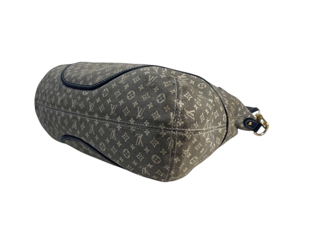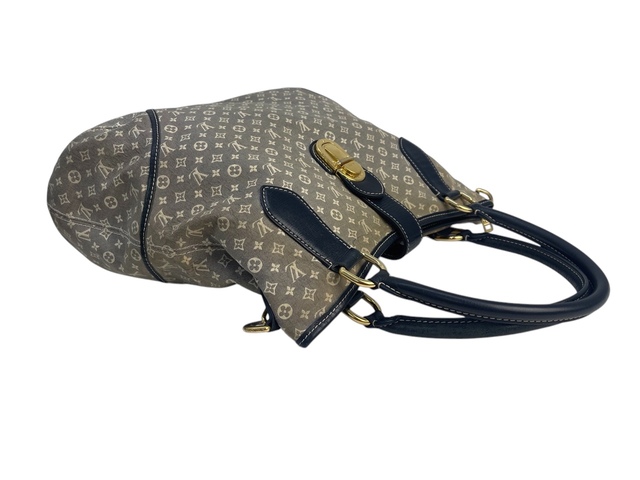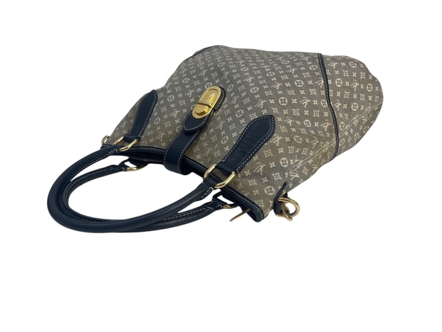 Louis Vuitton Idyile Mini Lin in tela monogram grigia, con rifiniture in pelle blu, con tracolla amovibile e regolabile.