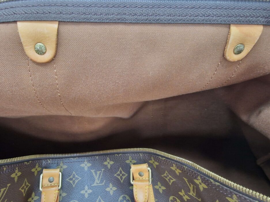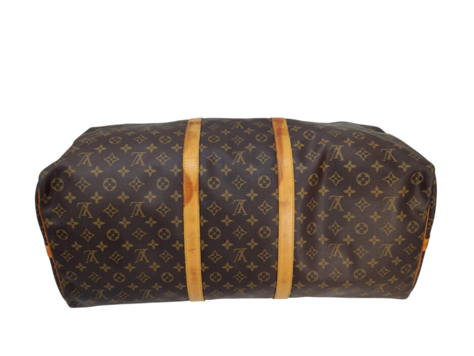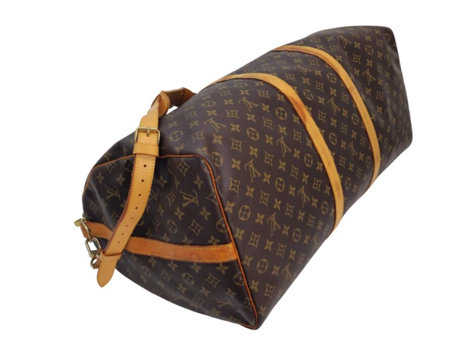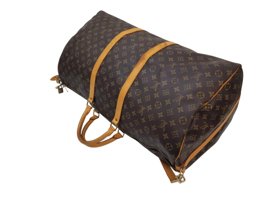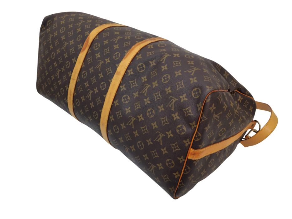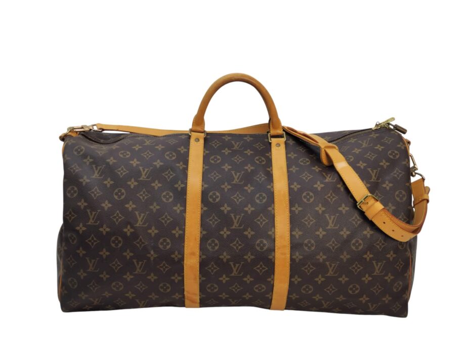 Louis Vuitton Keepall 60 in tela monogram e manici in vacchetta naturale.