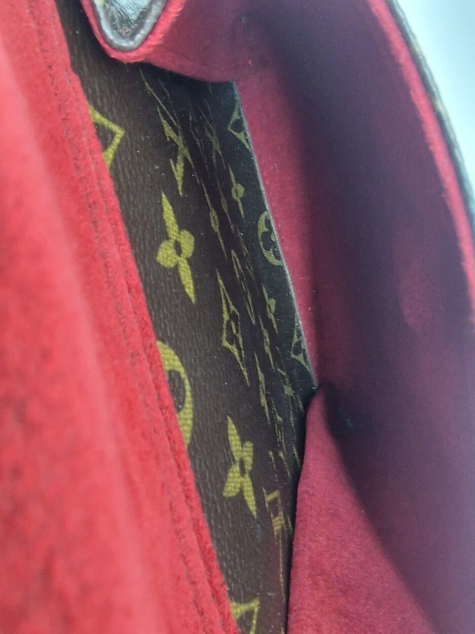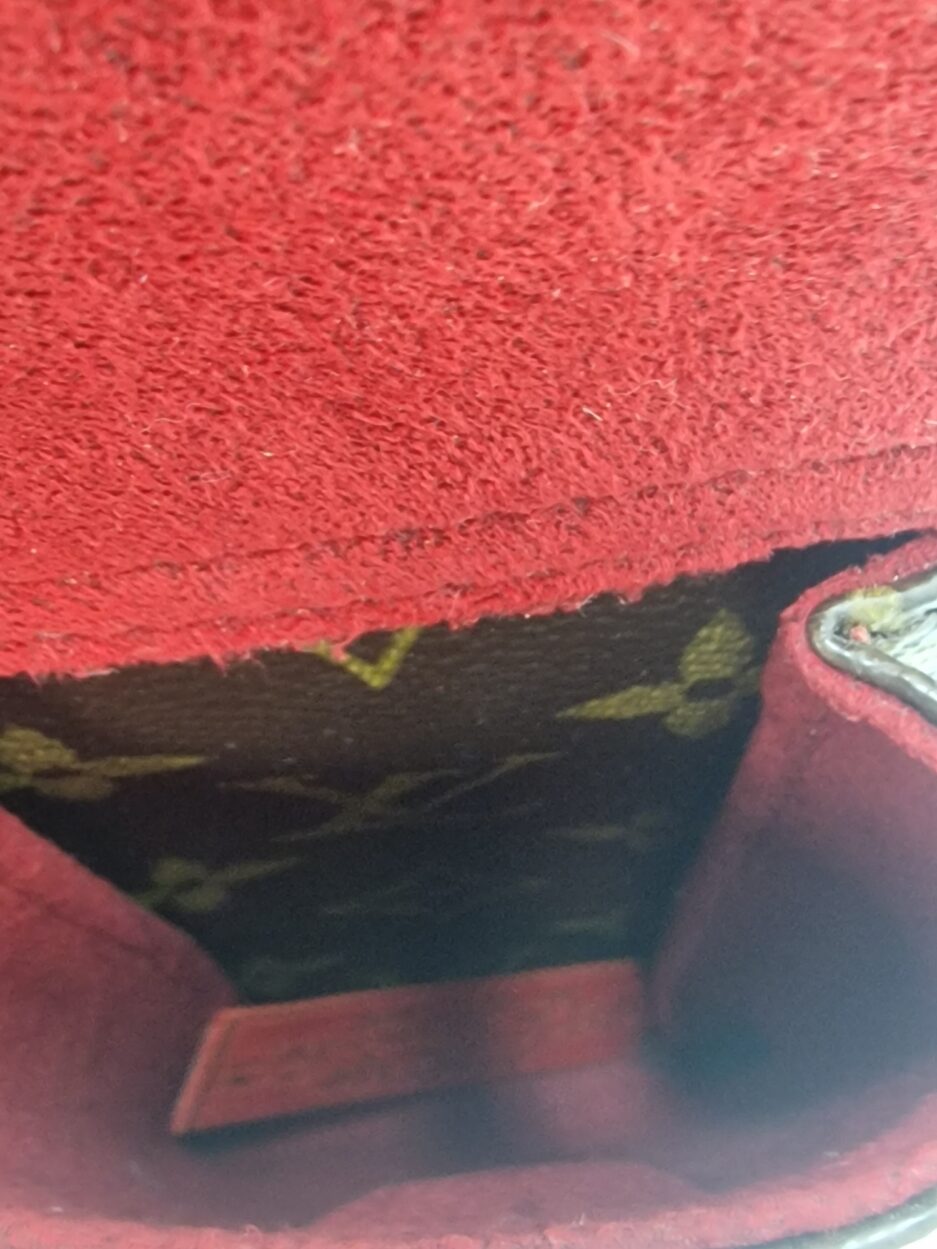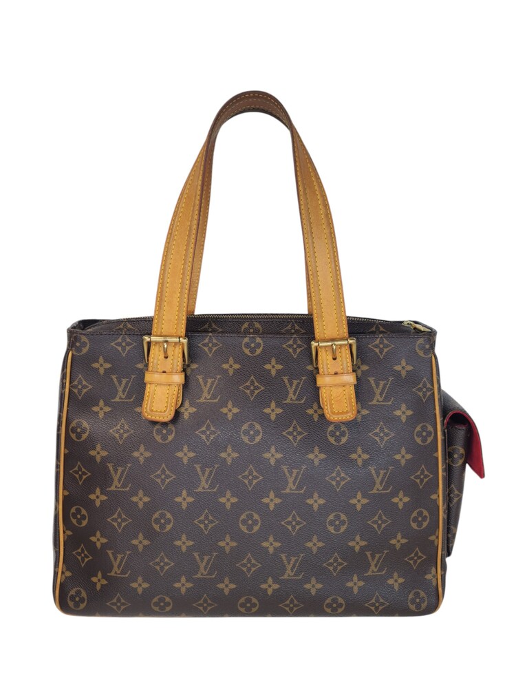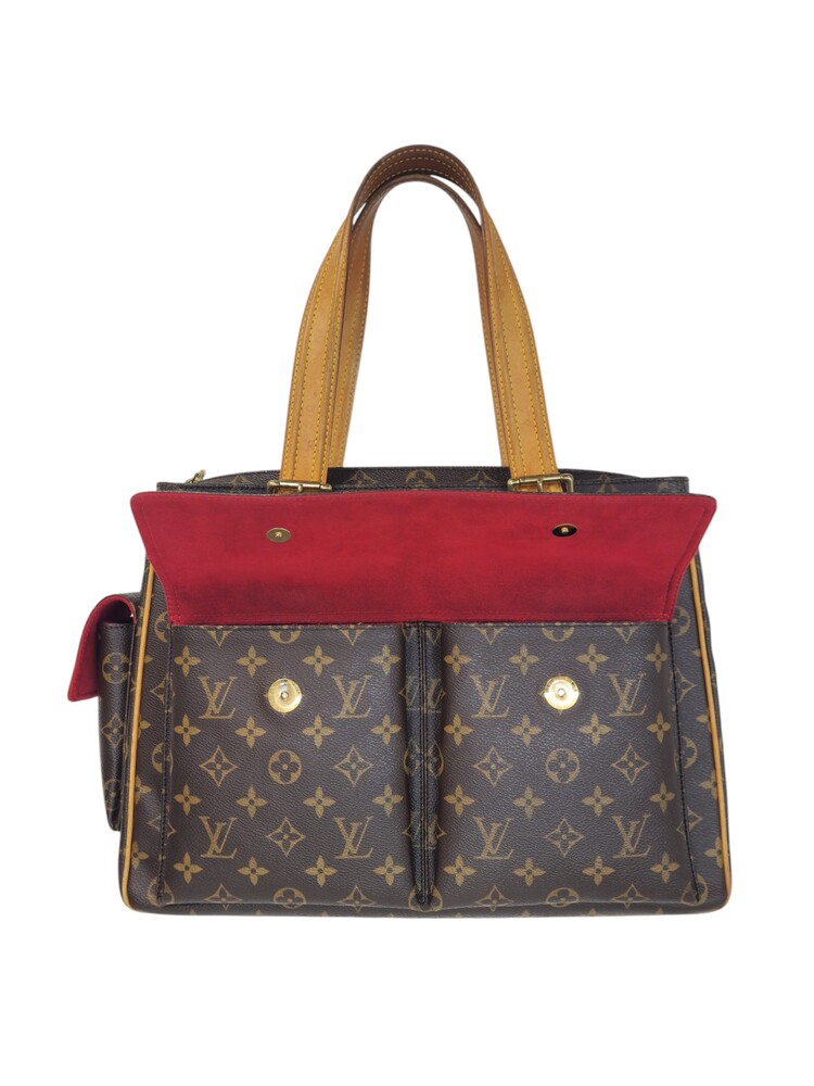 Louis Vuitton Multiple Cité in tela monogram ed interno in suede nella colorazione rossa. La borsa presenta rifiniture e manici in vacchetta naturale.