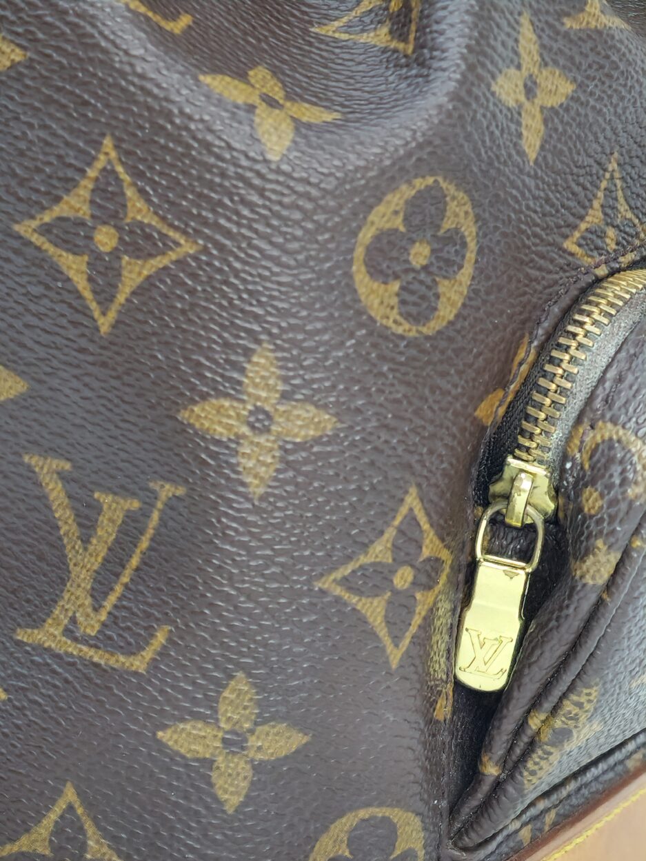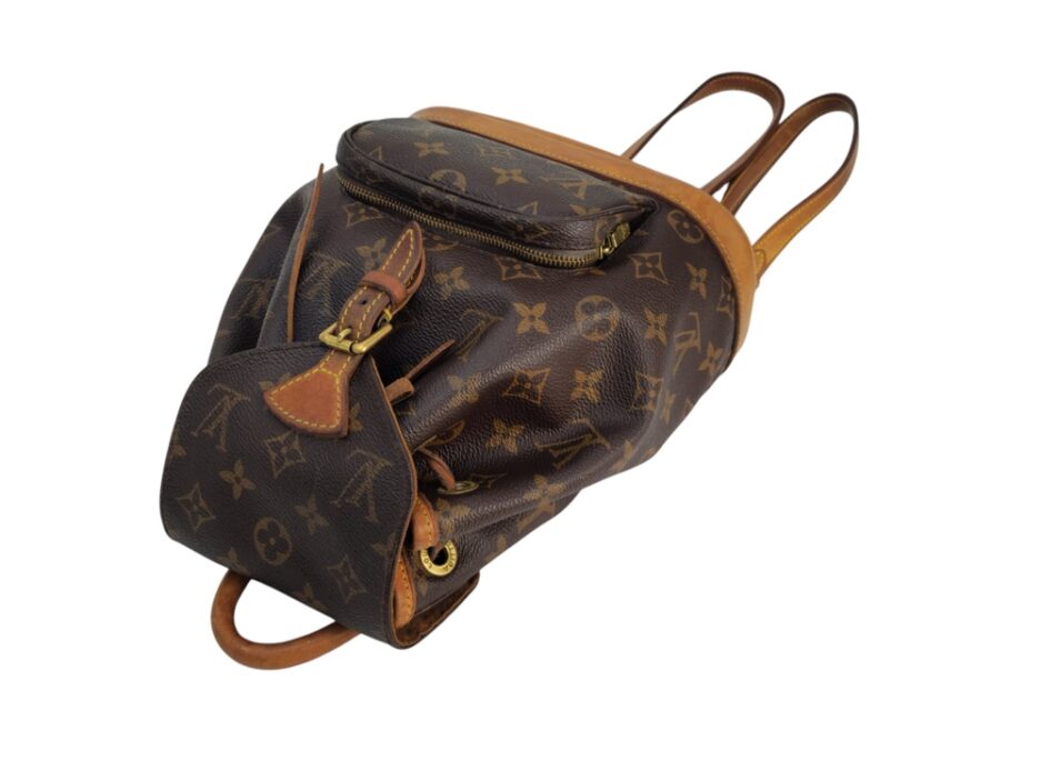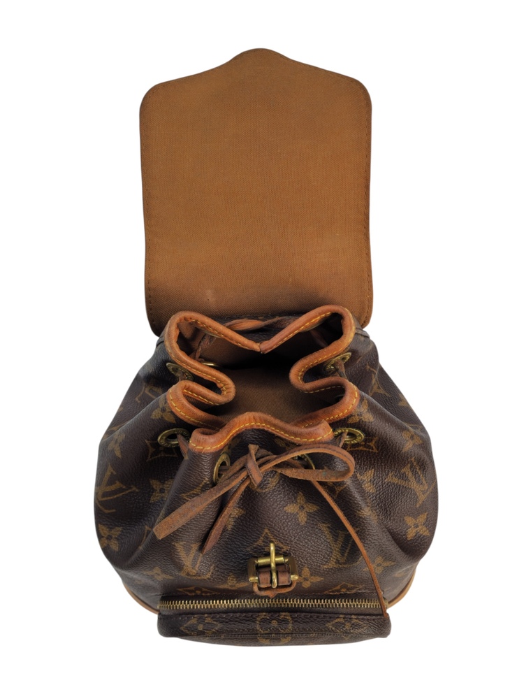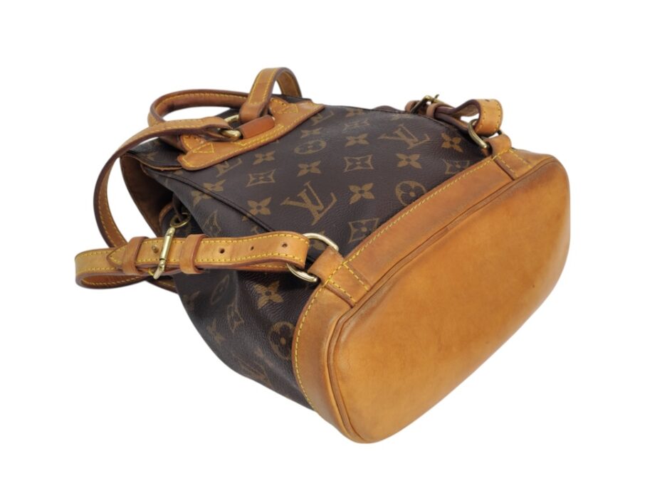 Louis Vuitton zaino Montsouris Mini. L’esclusivo modello, realizzato in tela Monogram, presenta raffinate finiture in vacchetta. Il manico superiore in pelle e le due bretelle regolabili offrono varie possibilità di trasporto.