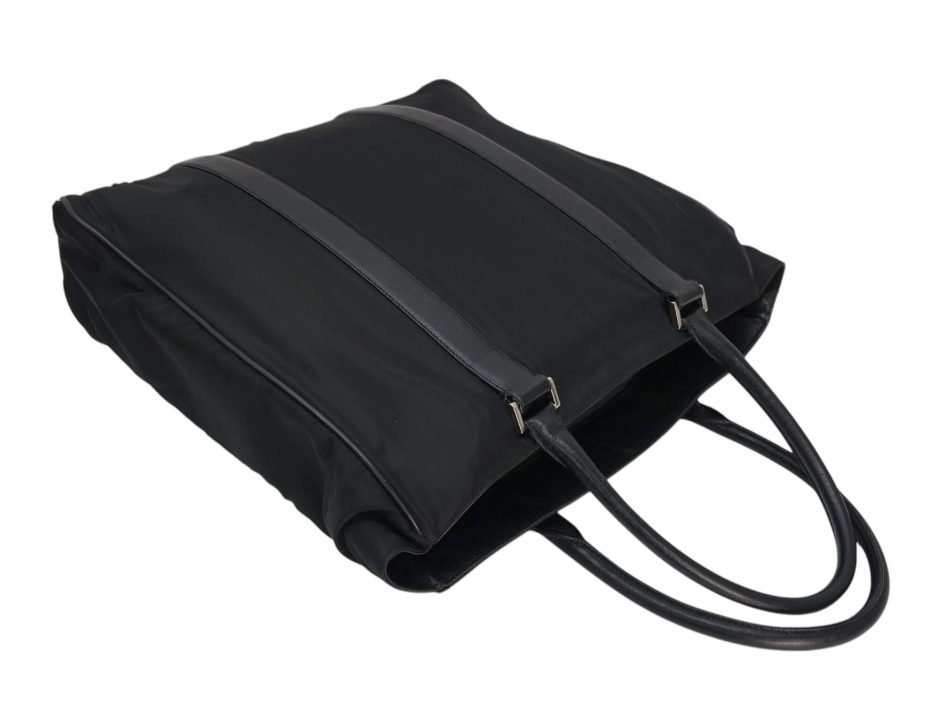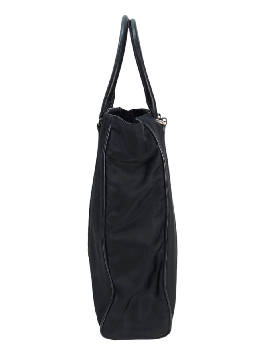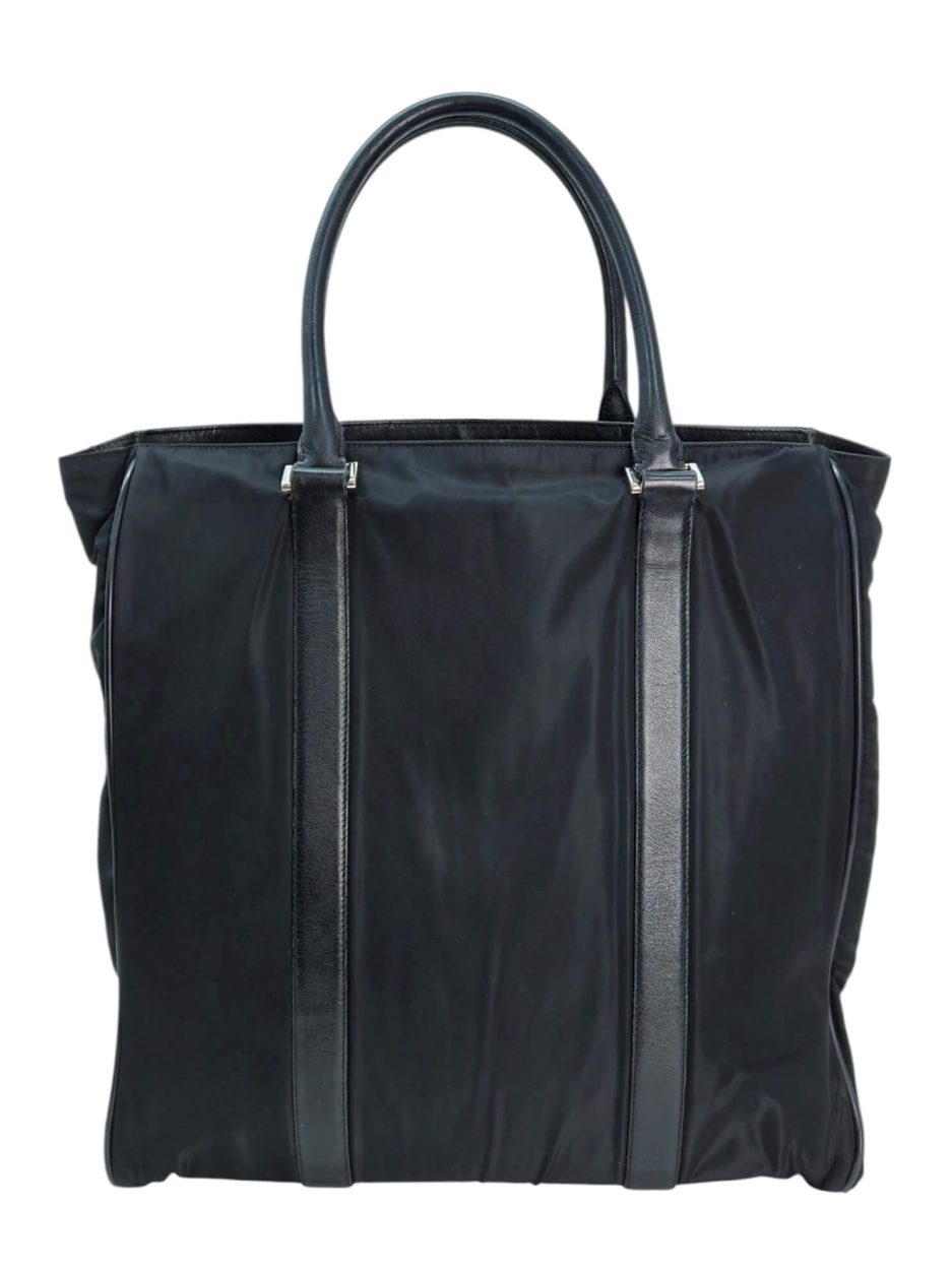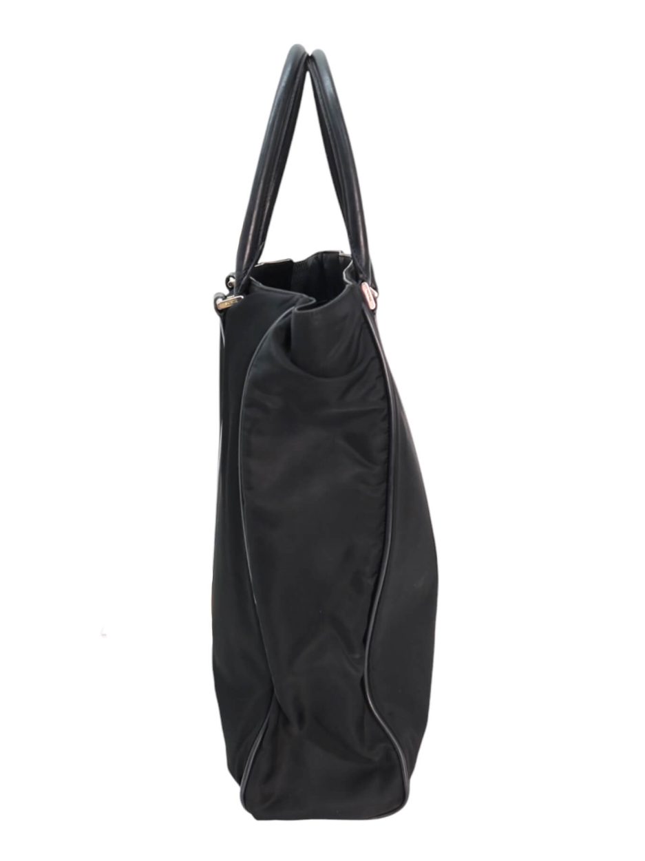 Prada Tote bag in nylon di colore nero con rifiniture e manici in pelle saffiano