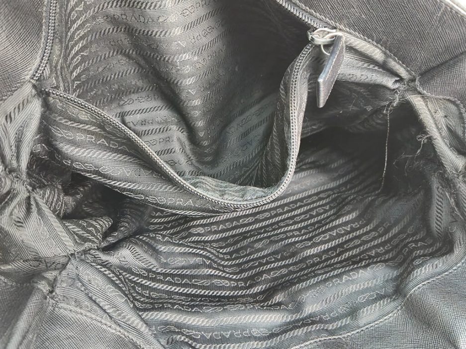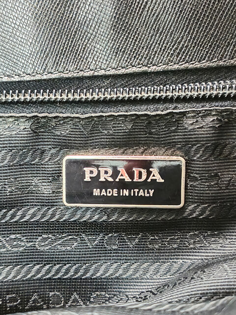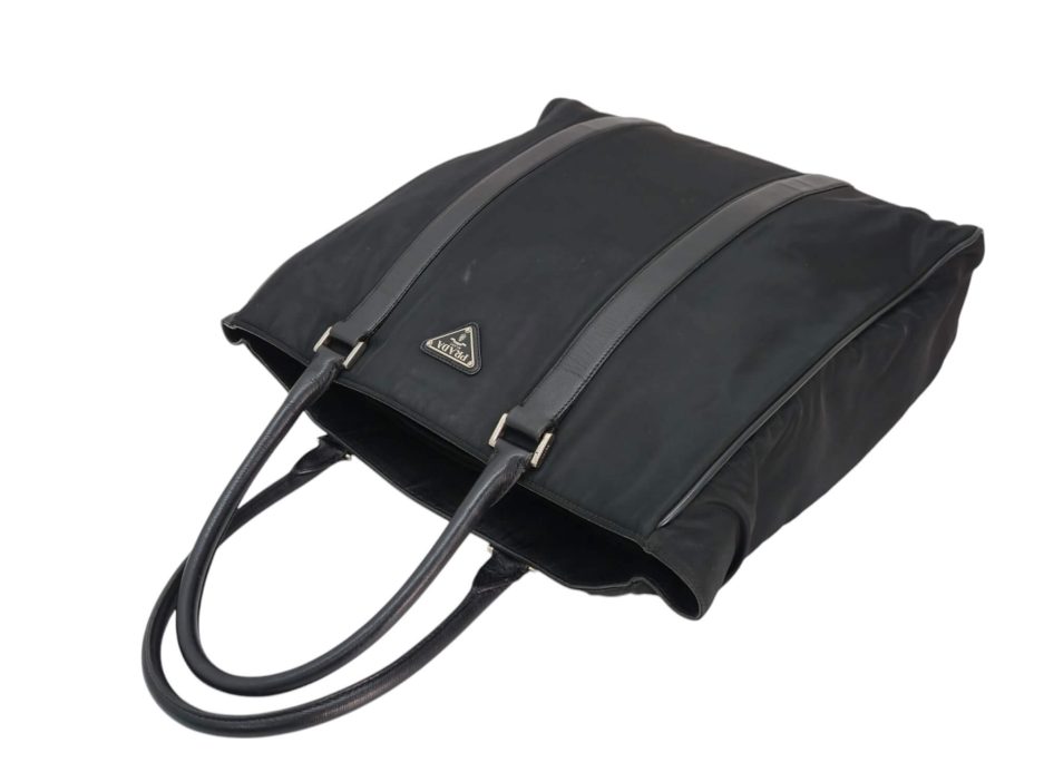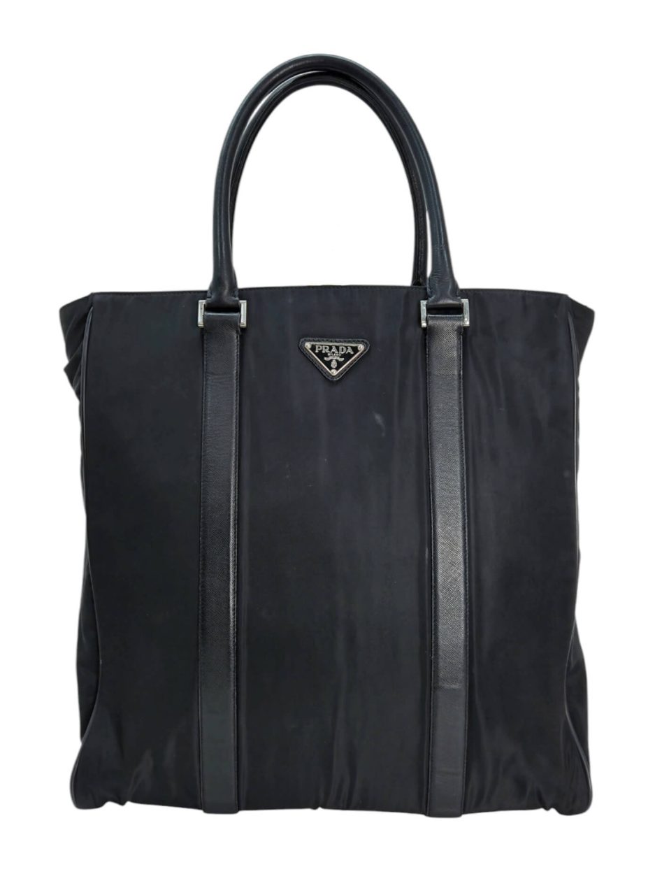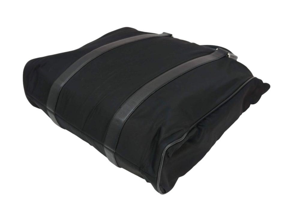 Prada Tote bag in nylon di colore nero con rifiniture e manici in pelle saffiano