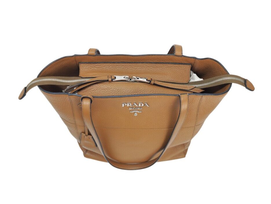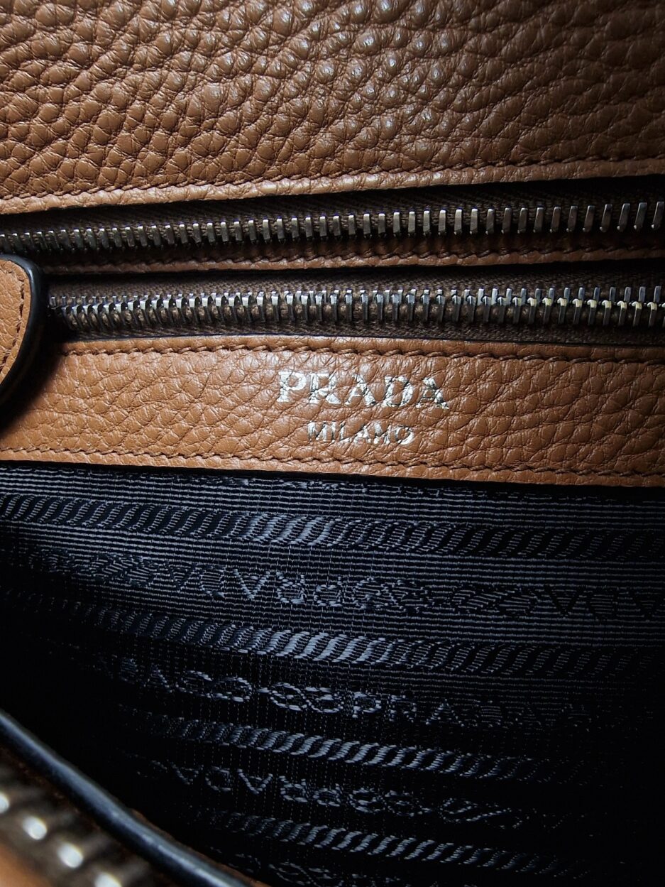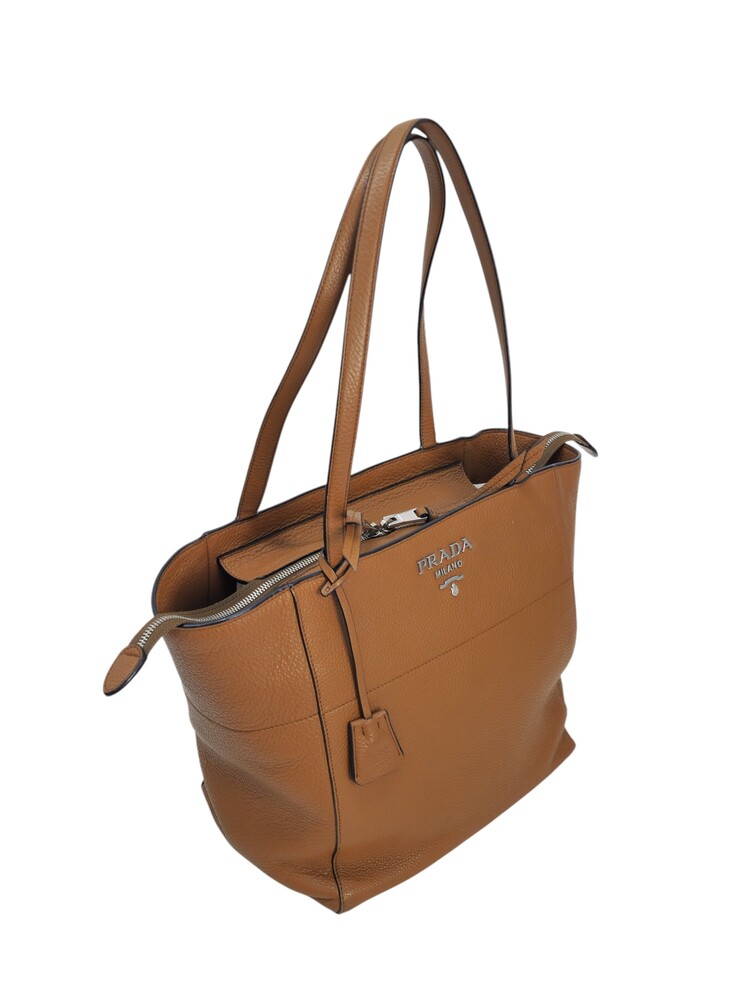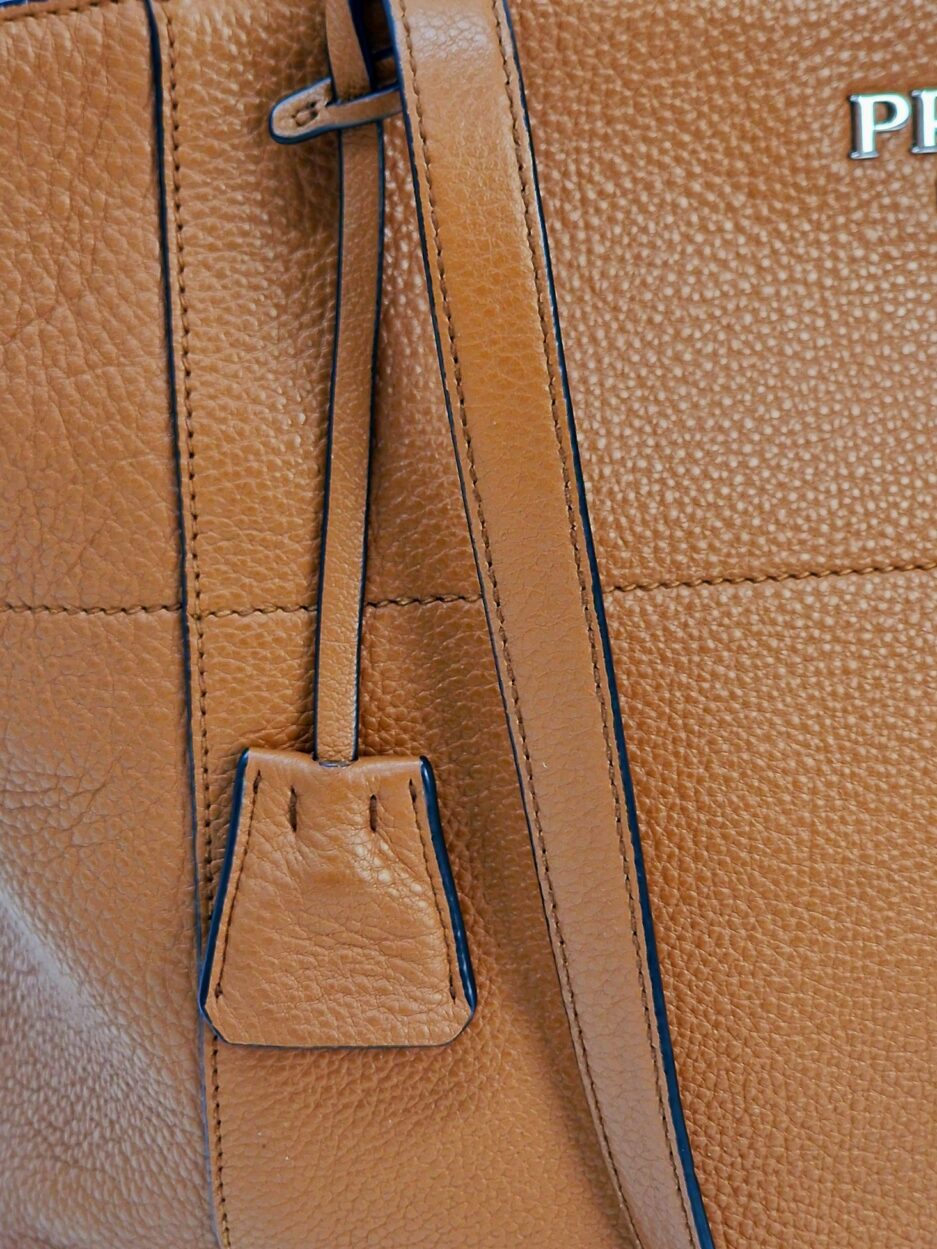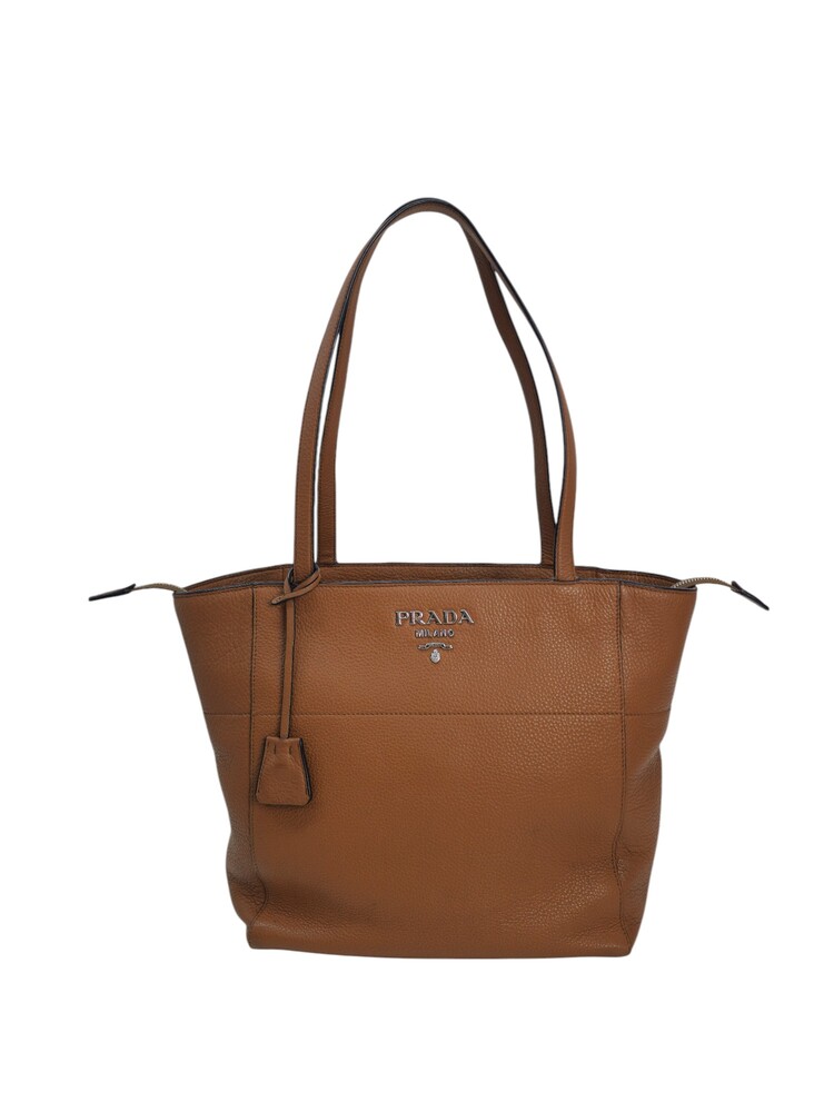 Prada borsa Tote Vintage in pelle marrone con hardware e rifiniture in metallo argentato.