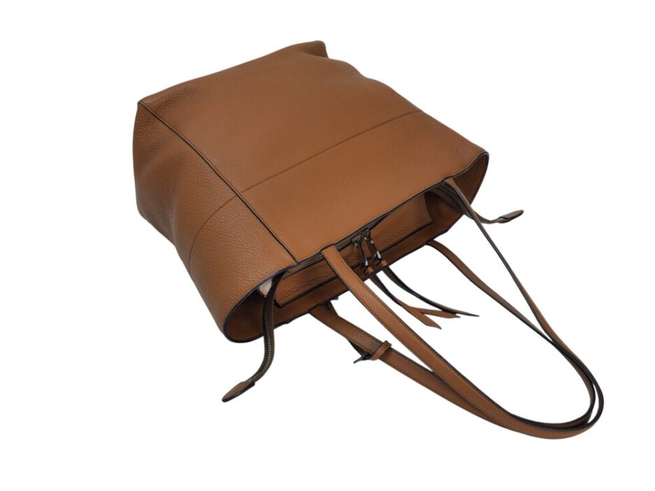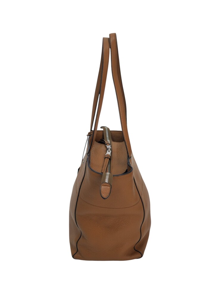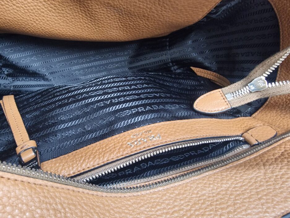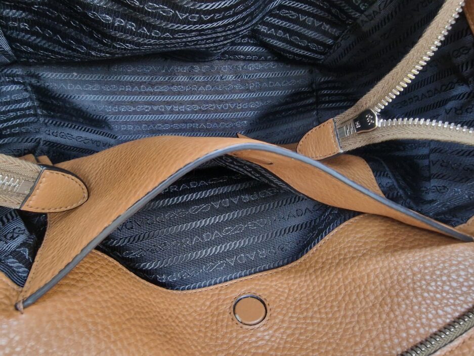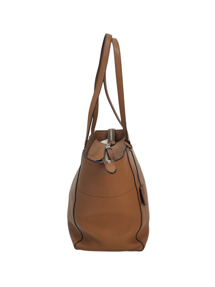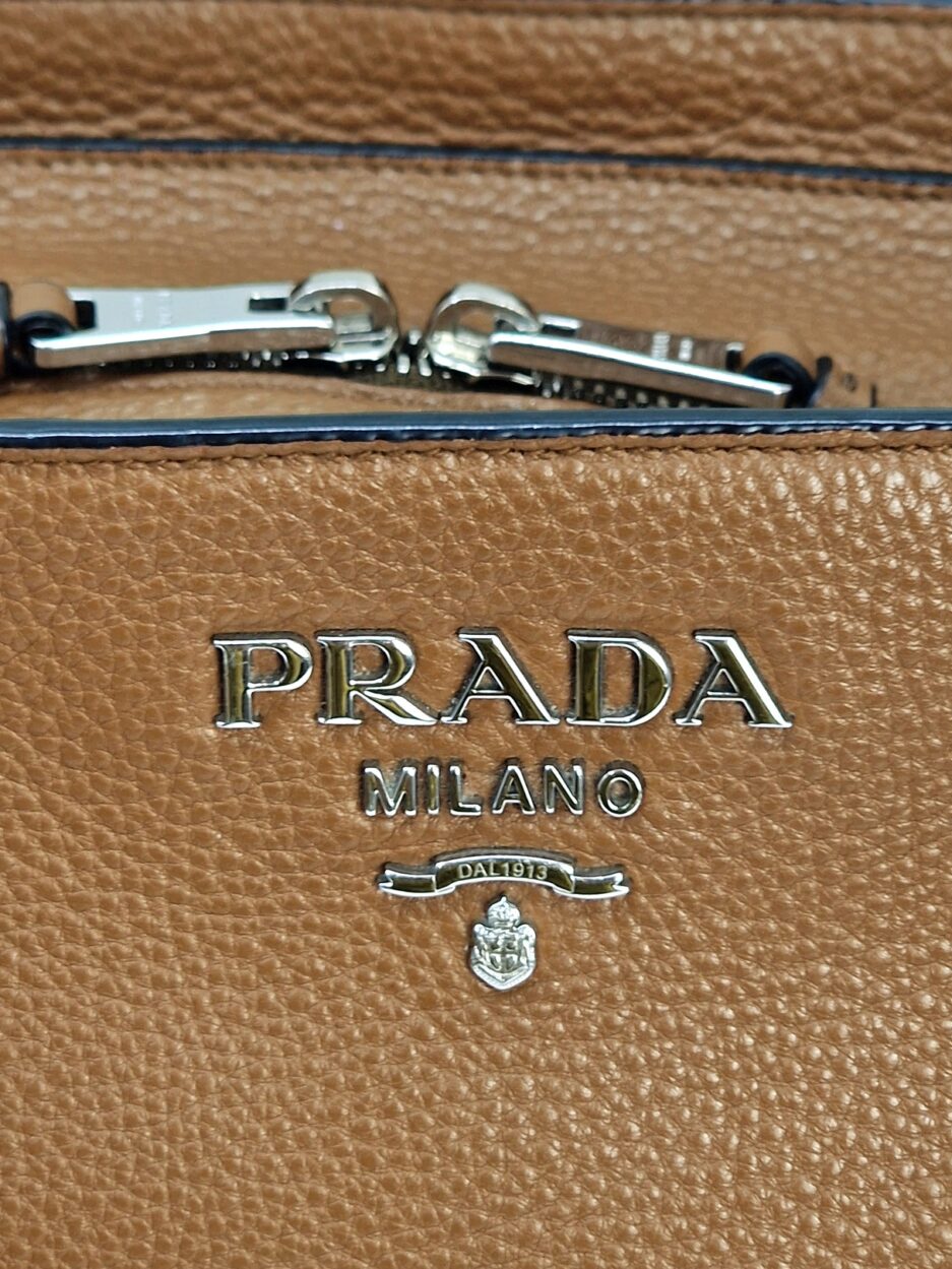Prada borsa Tote Vintage in pelle marrone con hardware e rifiniture in metallo argentato.