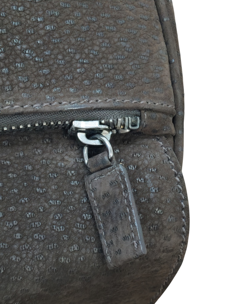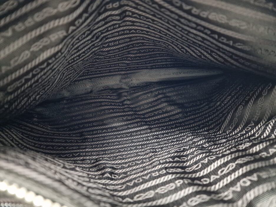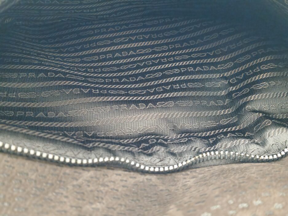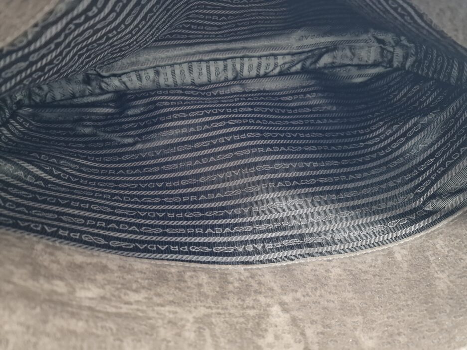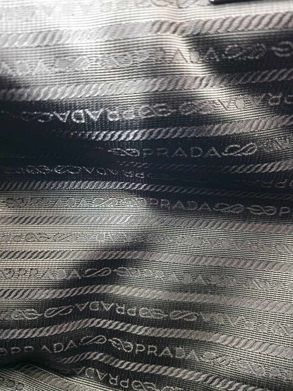 Prada Cartella da lavoro in pelle scamosciata con manico tono su tono, quattro scomparti anteriori ed uno posteriore e rifiniture in metallo argentato.