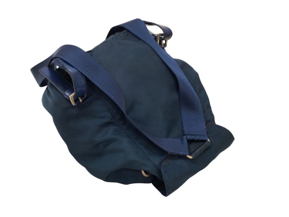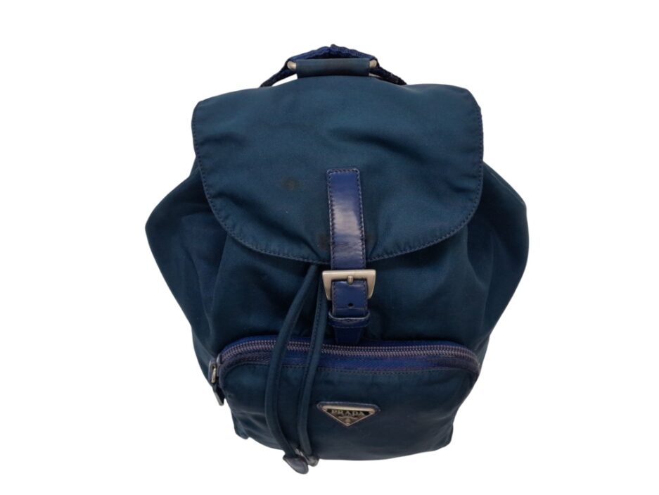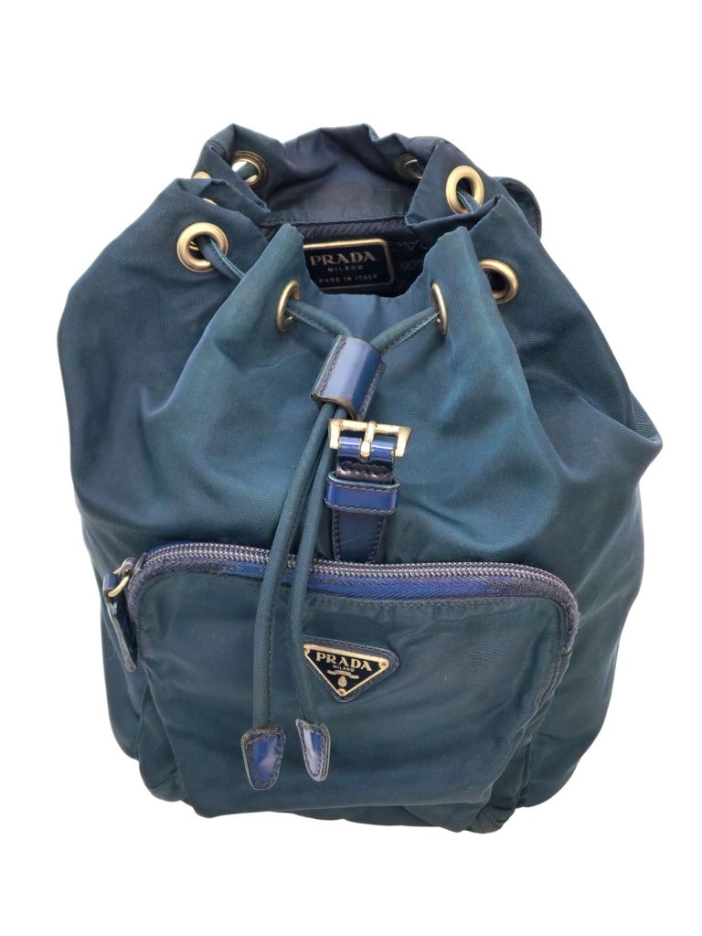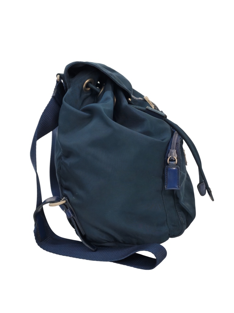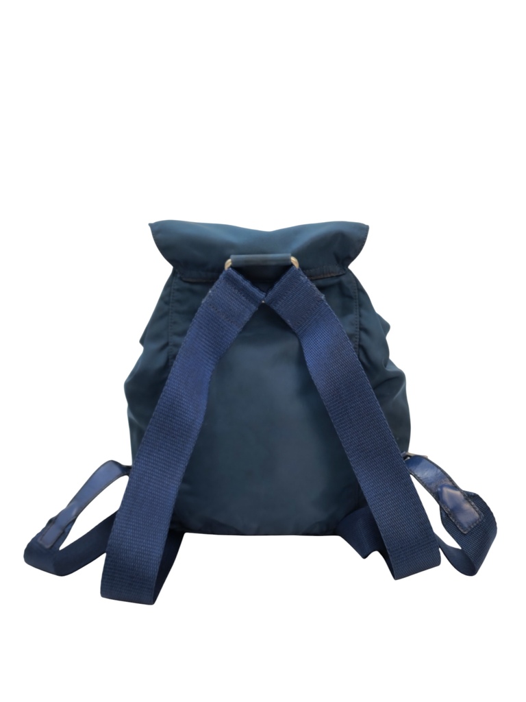 Prada Zaino Pm in nylon blu e rifiniture in pelle tono su tono.