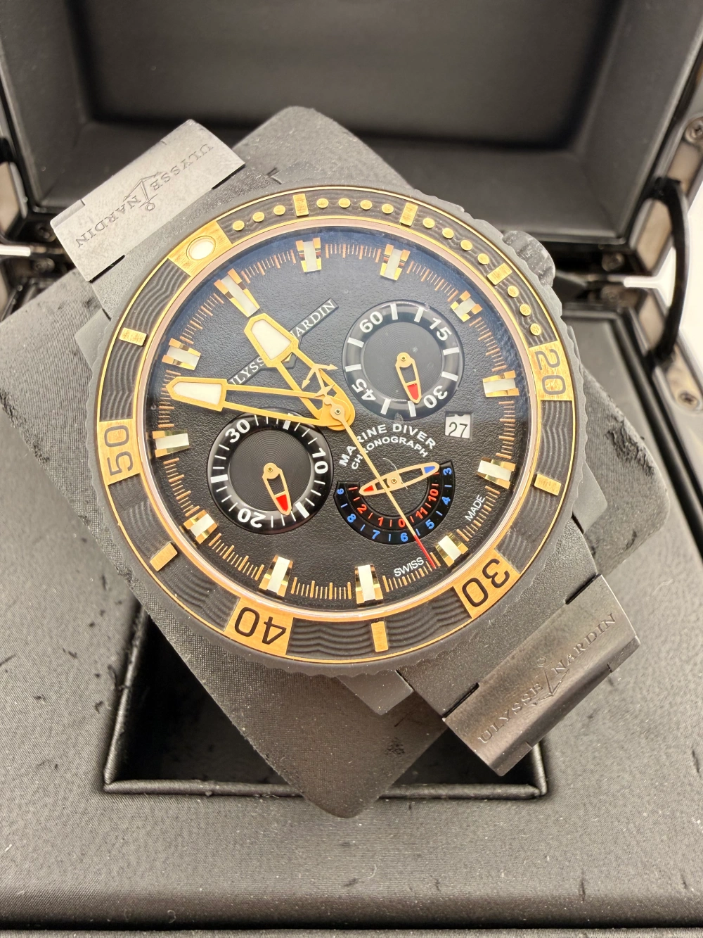 Brand: Ulysse Referenza: 353-90 Anno: 2017 Condizioni: Eccellenti Bracciale: Gomma Set: Full Set Diametro Cassa: 45mm Quadrante: Nero